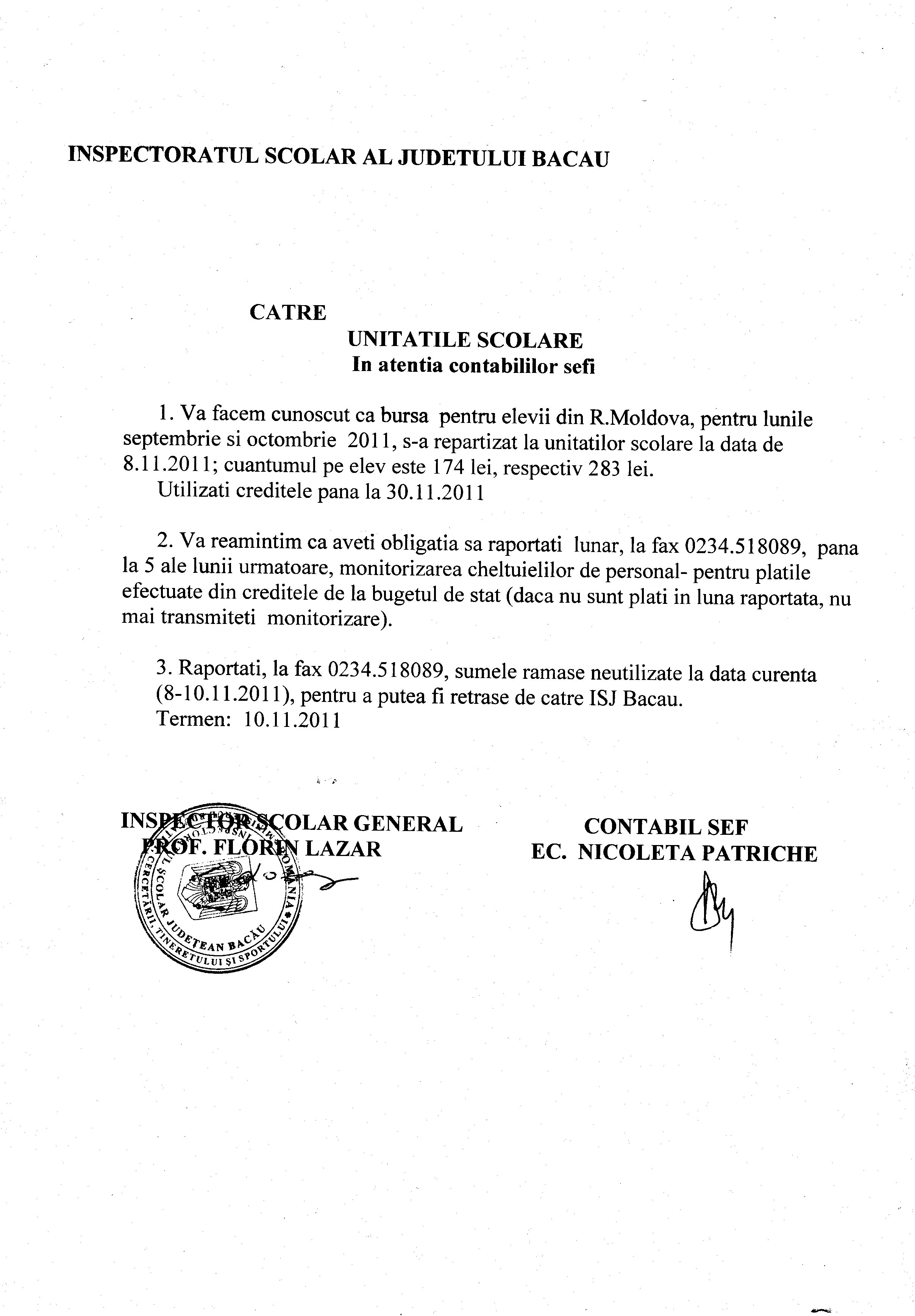 IMPORTANT! FOARTE URGENT! IN ATENTIA DIRECTORILOR SI CONTABILILOR SEFI DIN UNITATILE DE INVATAMANT PREUNIVERSITAR DIN JUDETUL BACAU