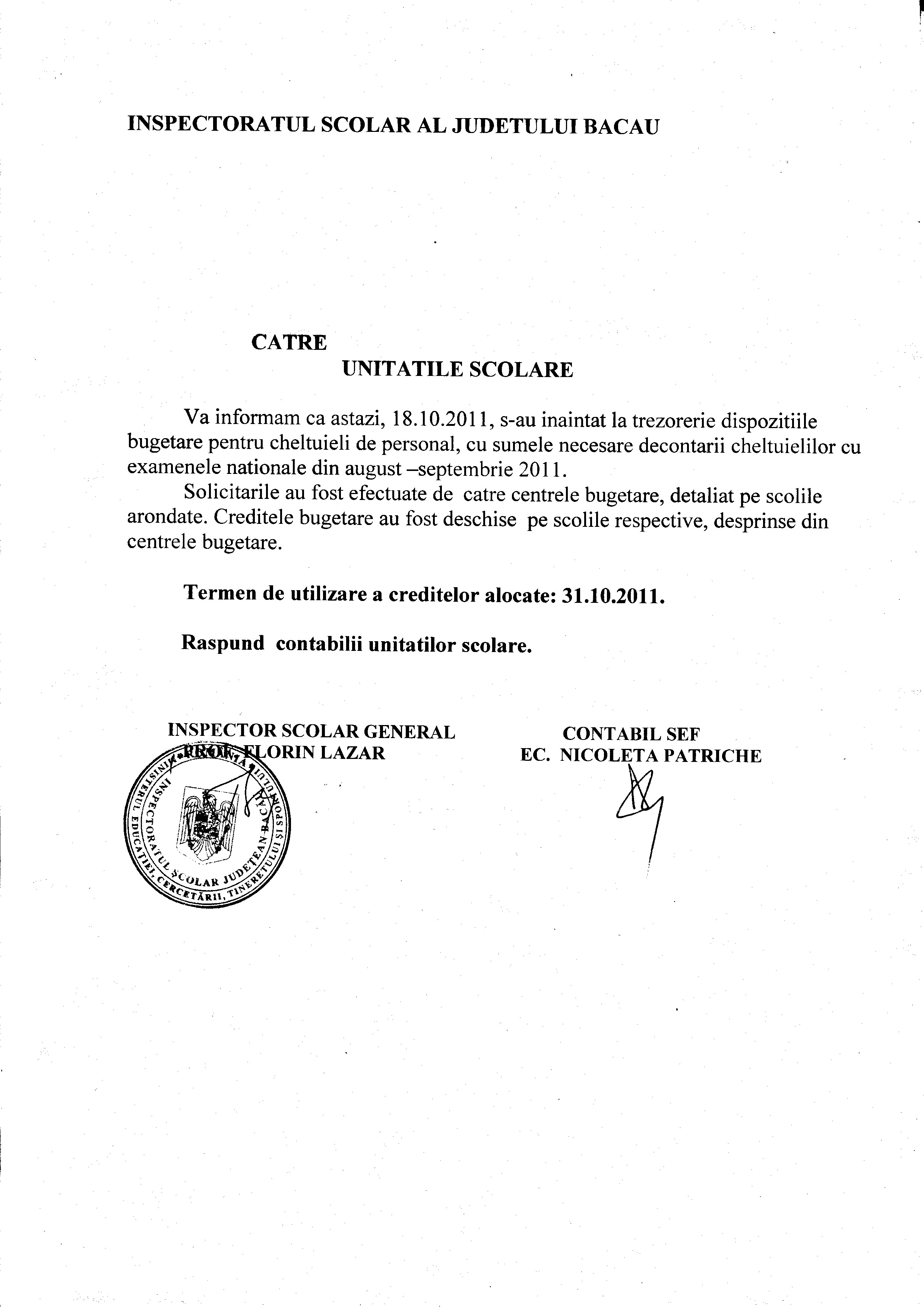 URGENT! IMPORTANT! IN ATENTIA DIRECTORILOR SI CONTABILILOR DIN UNITATILE DE INVATAMANT PREUNIVERSITAR DIN JUDETUL BACAU