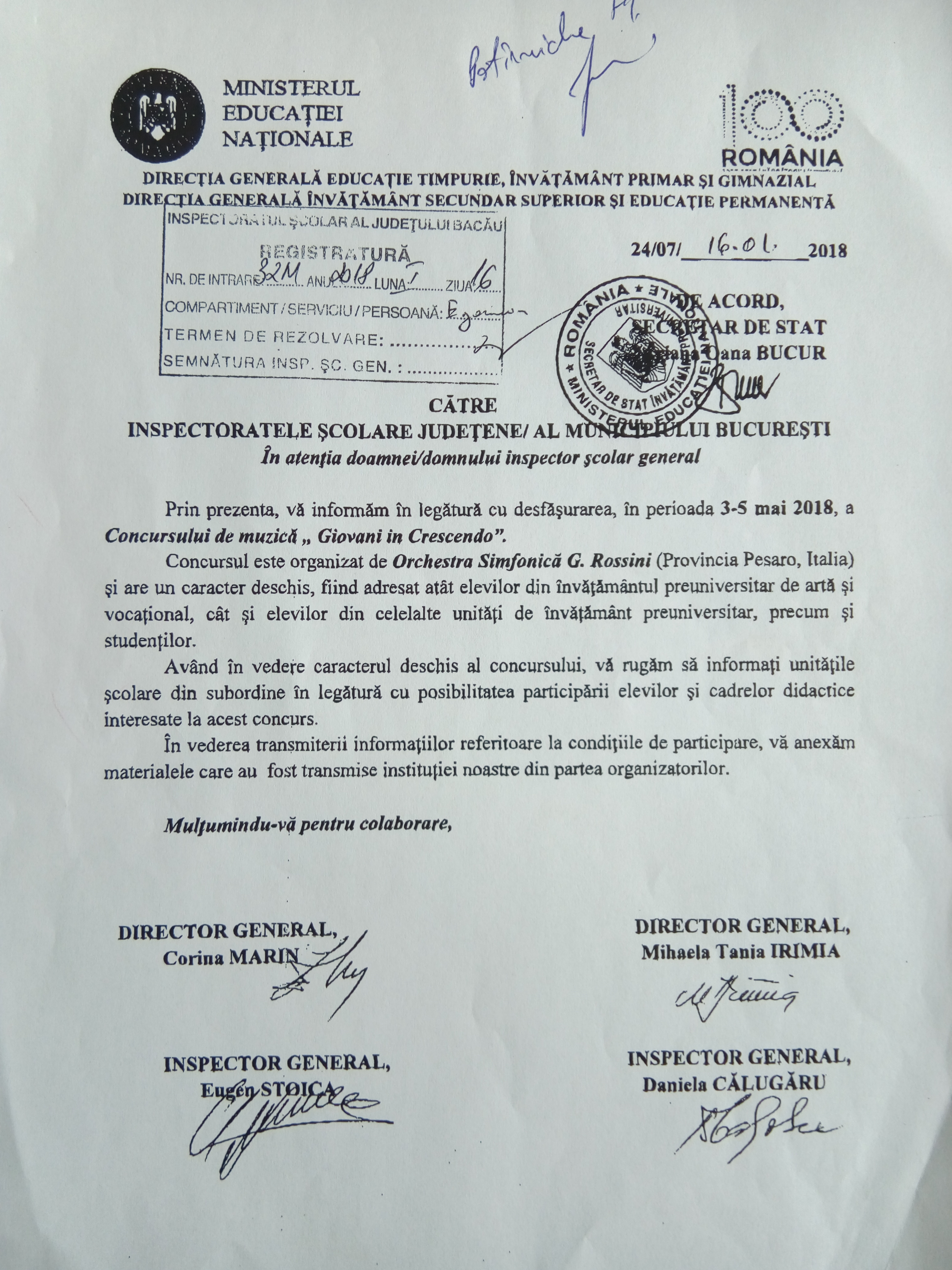 Concurs de muzică "Giovani in Crescendo", Provincia Pesaro, Italia, 3-5 mai 2018