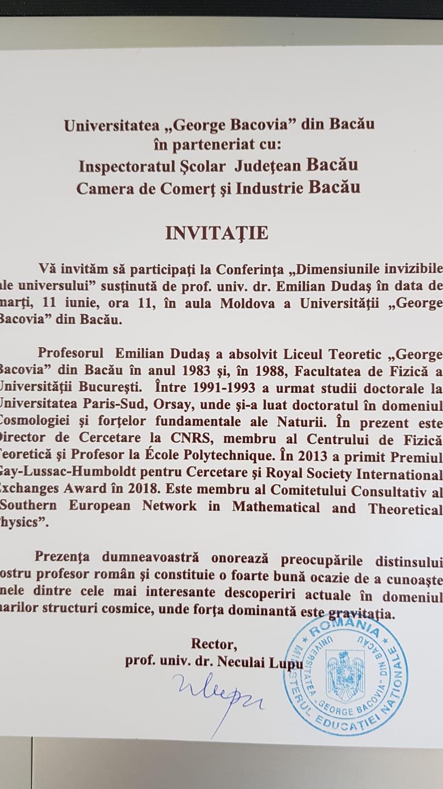 CONFERINȚA ,,DIMENSIUNILE INVIZIBILE ALE UNIVERSULUI"_12 IUNIE, ORA 17:00