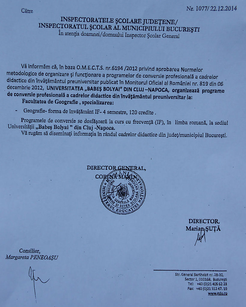 Program conversie geografie UBB Cluj-Napoca