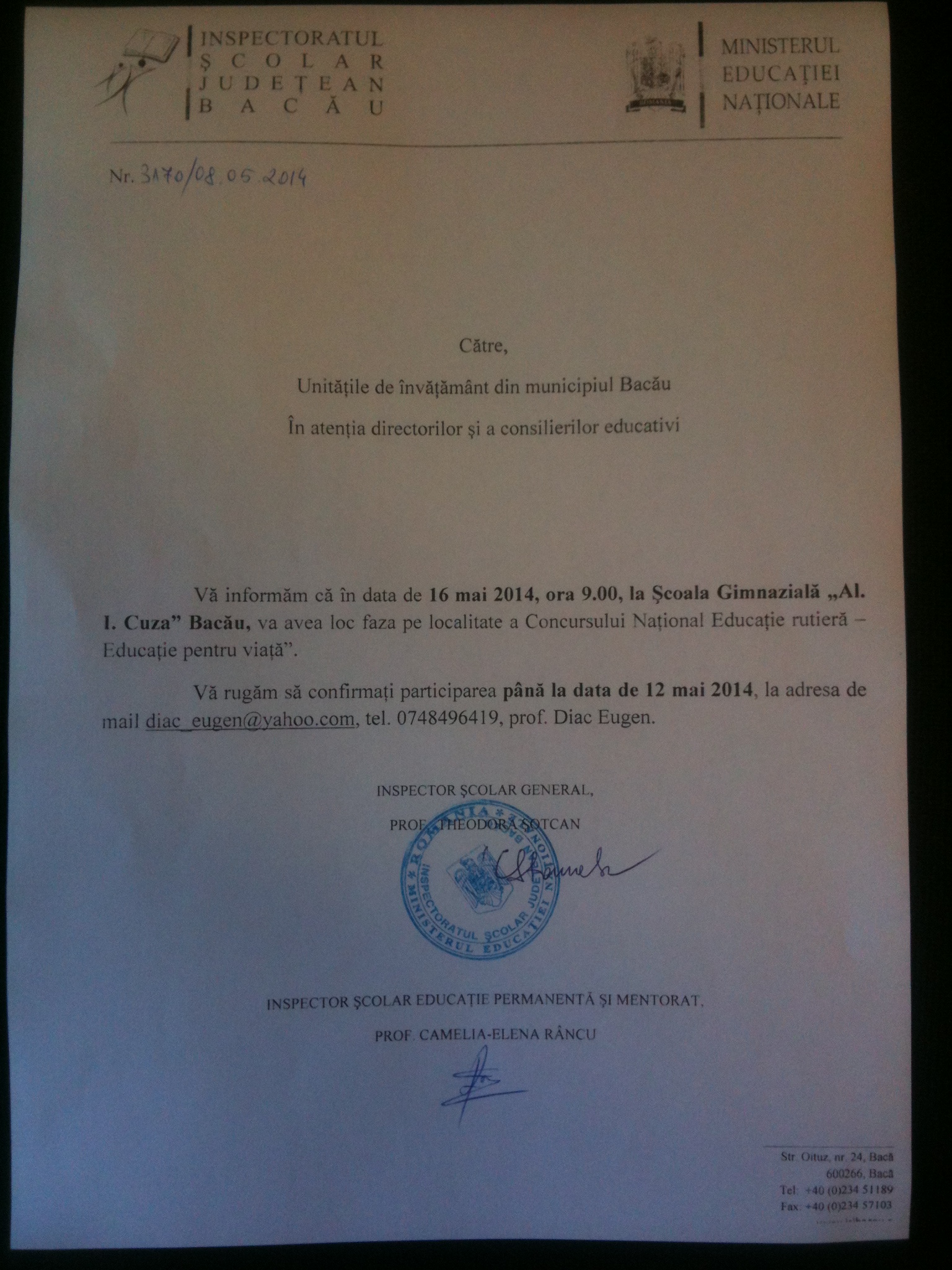 CONCURS NATIONAL "EDUCATIE RUTIERA-EDUCATIE PENTRU VIATA"