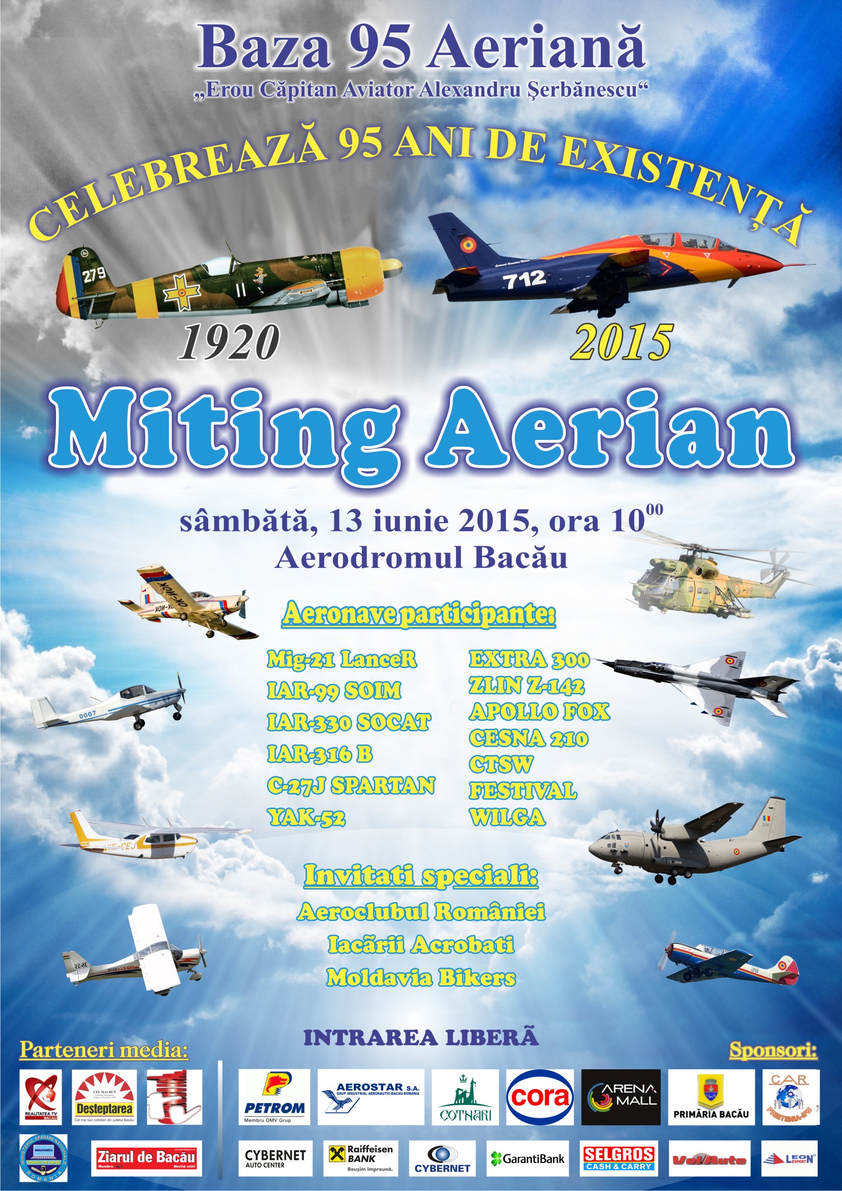 MITING AERIAN, 13 IUNIE 2015, ORA 10.00, AERODROMUL BACAU
