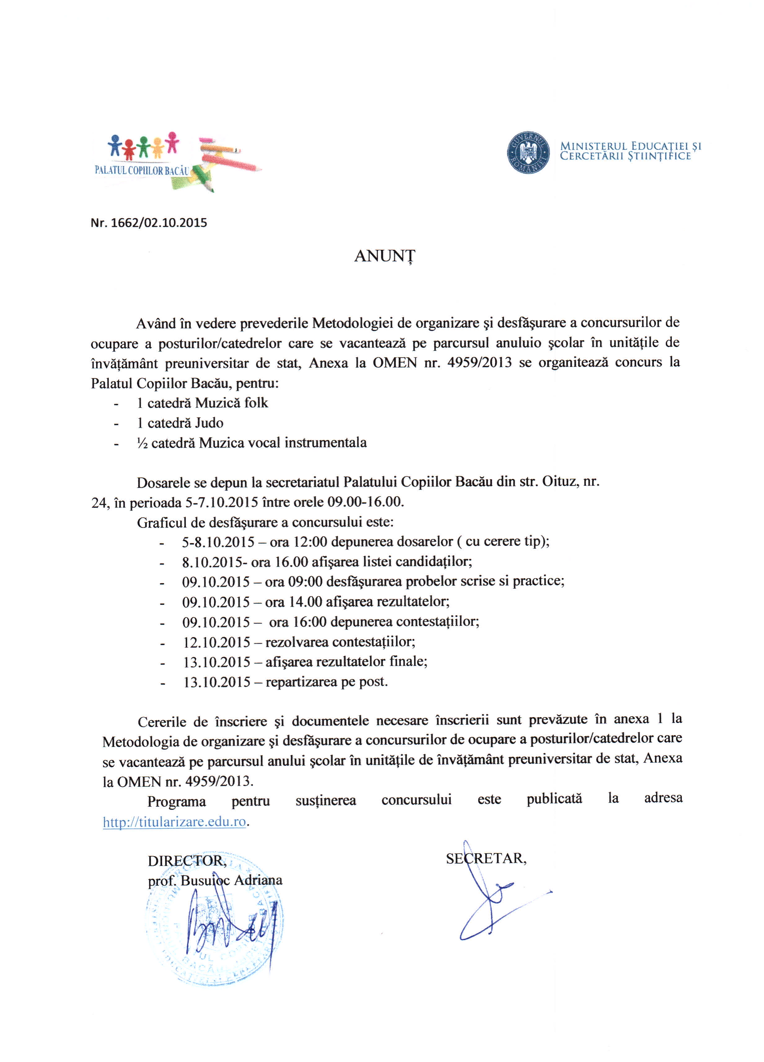 PALATUL COPIILOR BACAU-ANUNT CONCURS