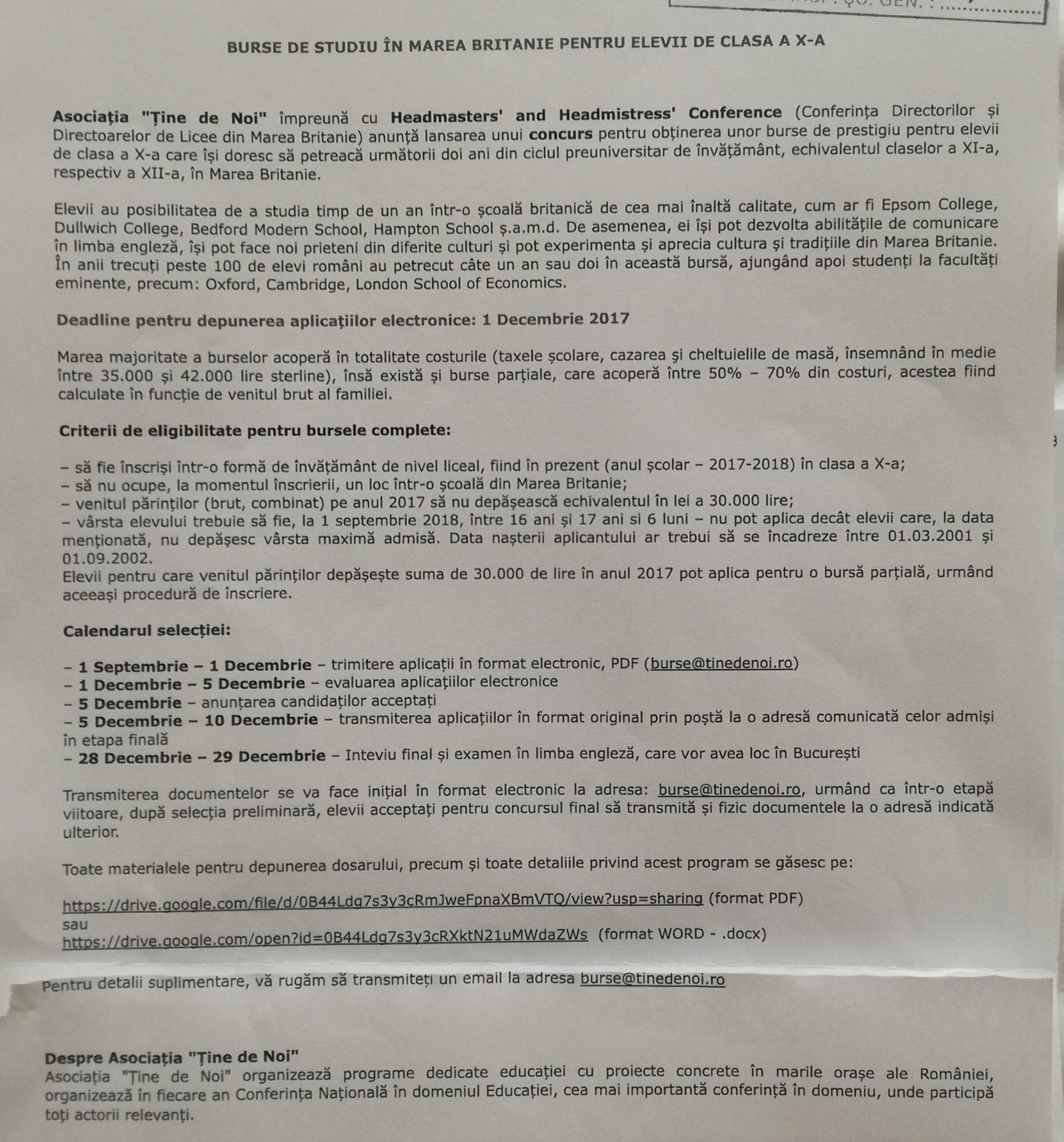 Burse de studiu in Marea Britanie -elevi clasa a X-a